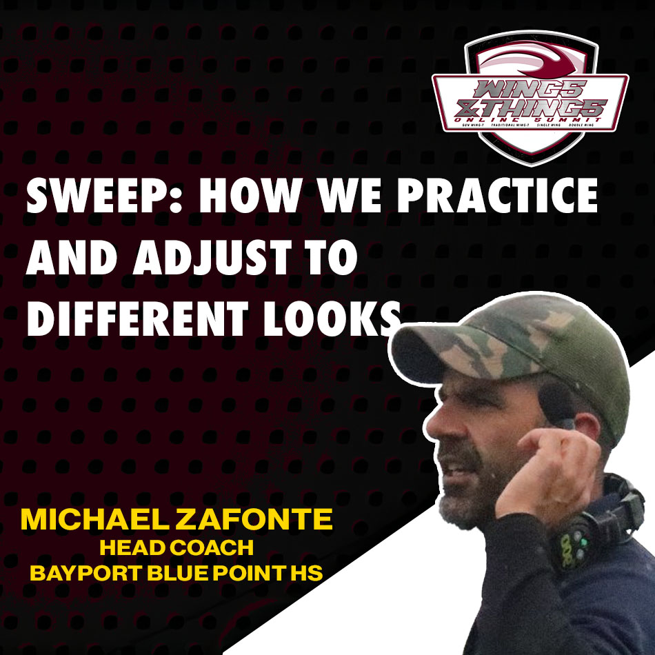 Head Coach Mike Zafonte of Bayport Blue Point High School shares his coaching journey from volunteer running backs coach in 1998 to leading one of Long Island’s most successful football programs. He reflects on lessons learned from early struggles with the spread offense, his discovery of the hybrid Wing-T, and how adopting the system transformed his team into a perennial champion.